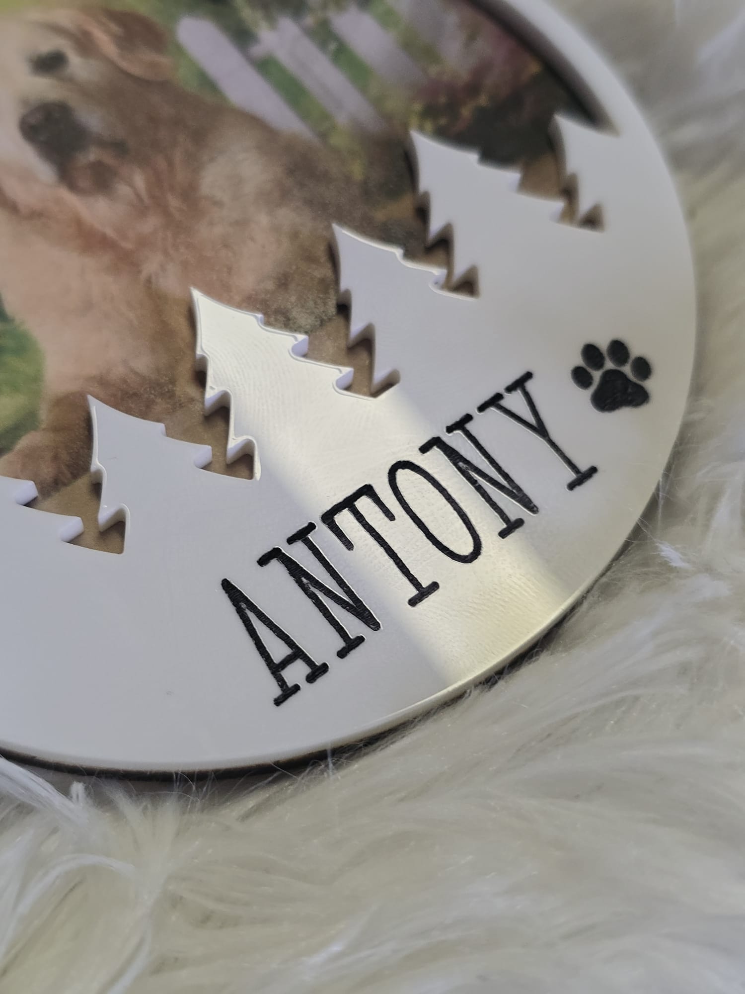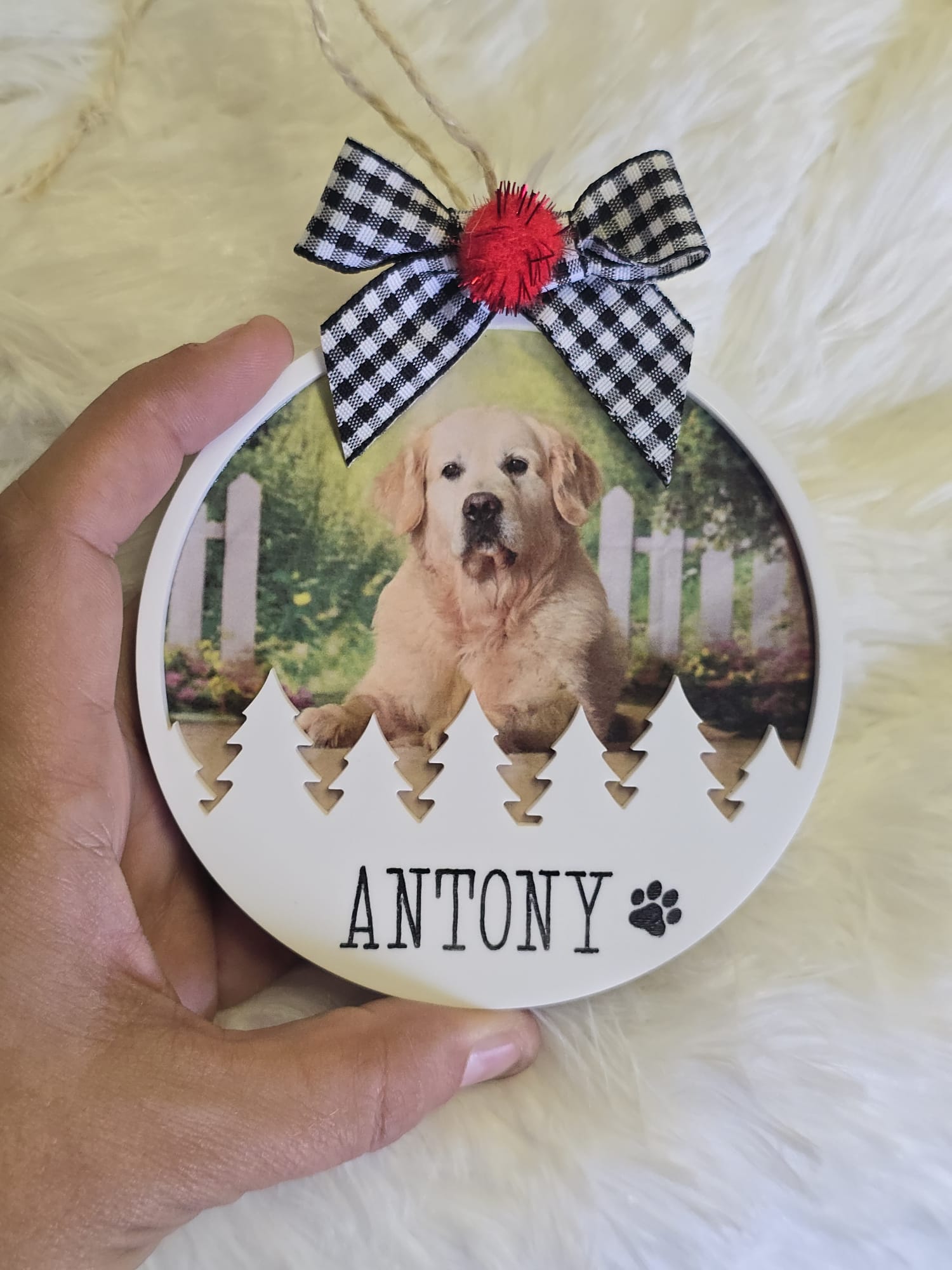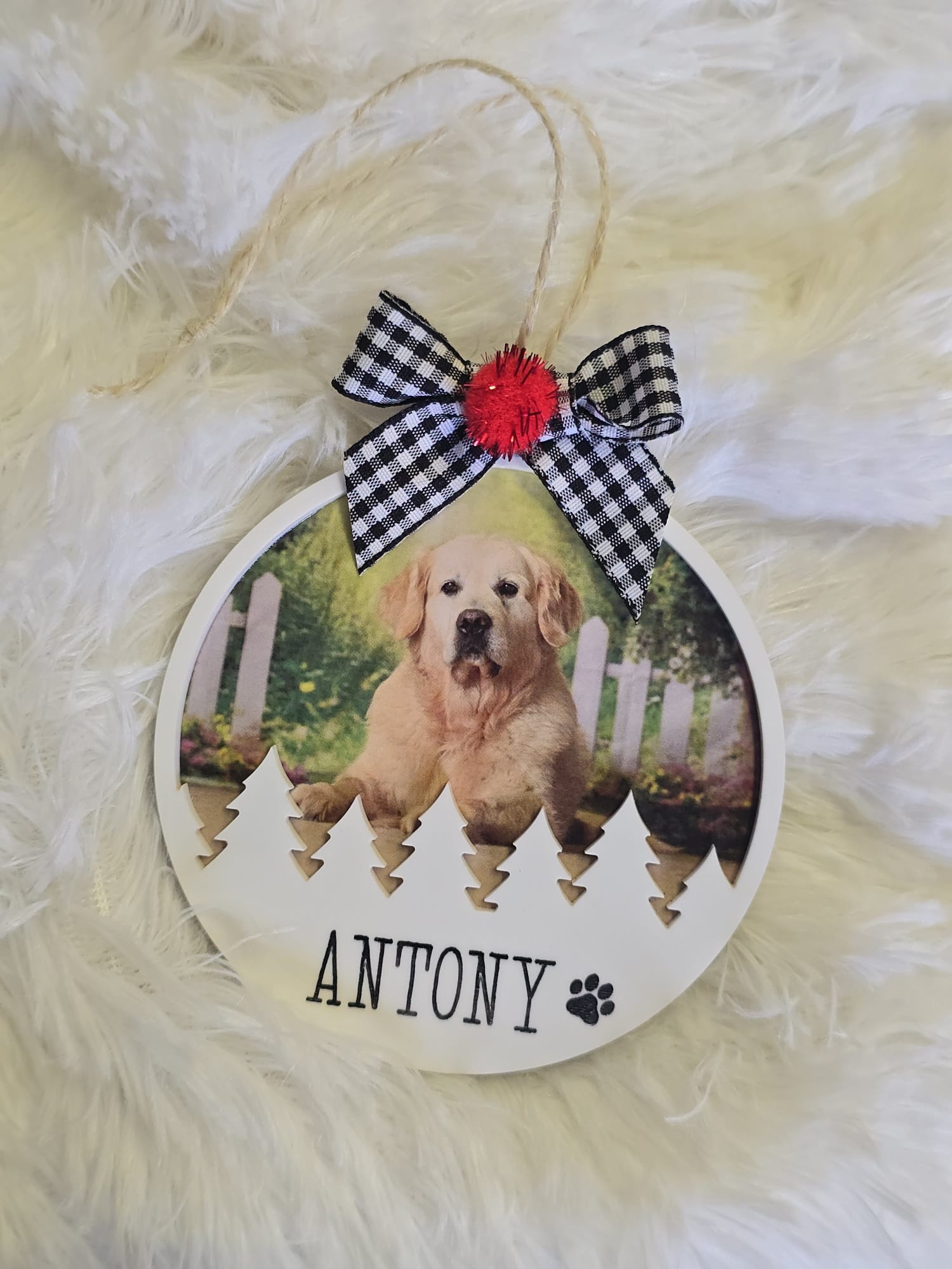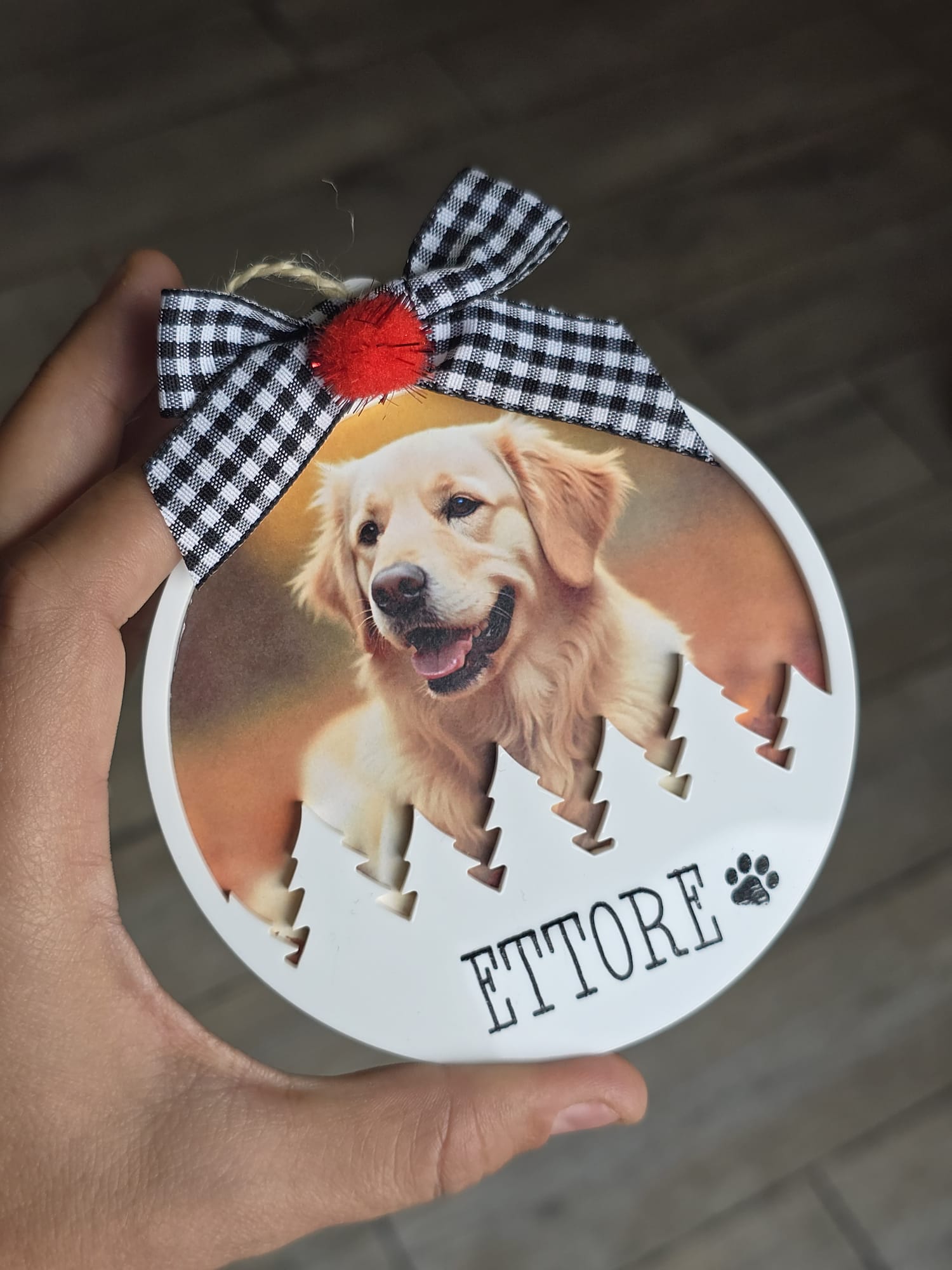 Porta il tuo cane sempre con te anche a Natale! Decorazione in legno personalizzata con foto, nome e fiocco artigianale della Valle della Mela.