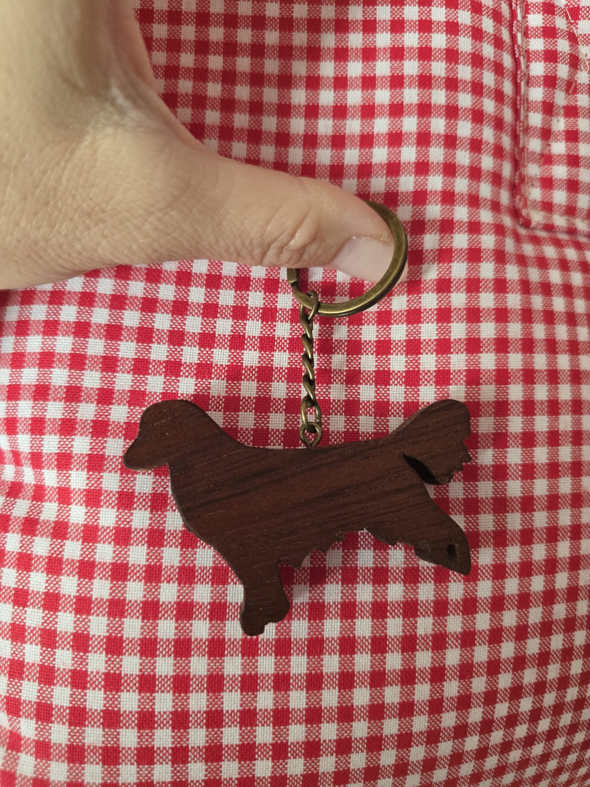 La silhouette del Golden è dettagliata quanto basta per essere riconoscibile e raffinata: coda folta, postura elegante e un tratto morbido che richiama la dolcezza tipica della razza. La lavorazione manuale rende ogni pezzo irripetibile, con venature, sfumature e piccole differenze che testimoniano l’autenticità del legno.