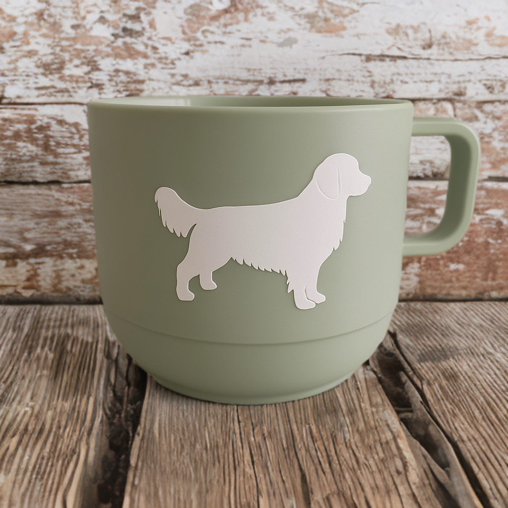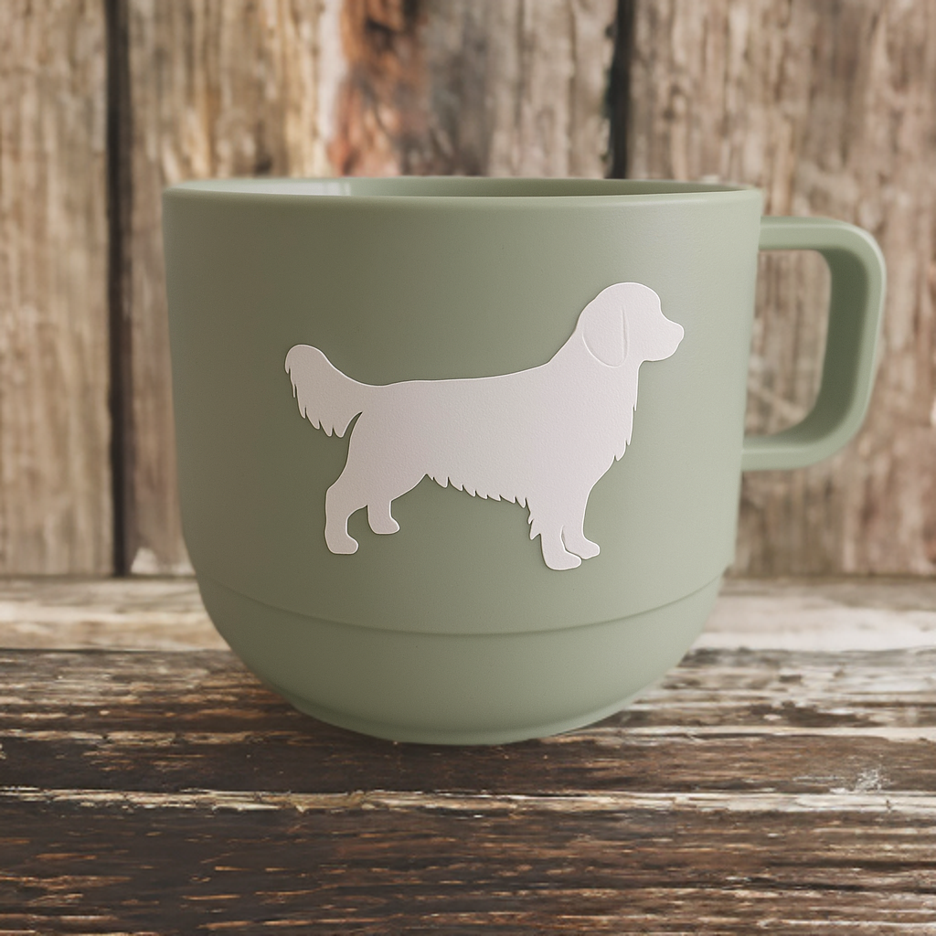 Leggera, resistente e dal design dolcissimo, questa tazza verde salvia con il profilo del Golden Retriever è pensata per accompagnarti in tanti momenti diversi della giornata, adattandosi alle tue esigenze con semplicità e stile.