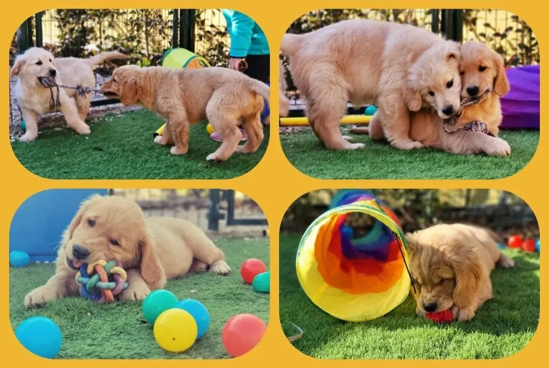 Vivi un momento unico a contatto con i nostri Golden Retriever: coccole, gioco e interazione autentica.